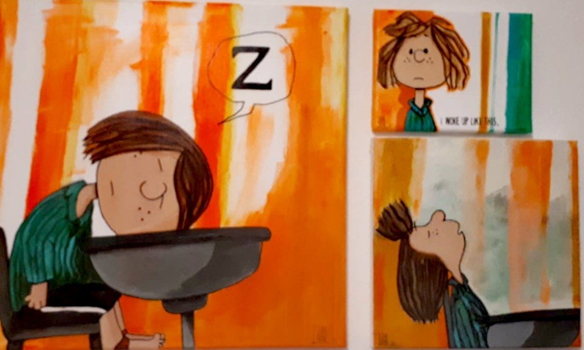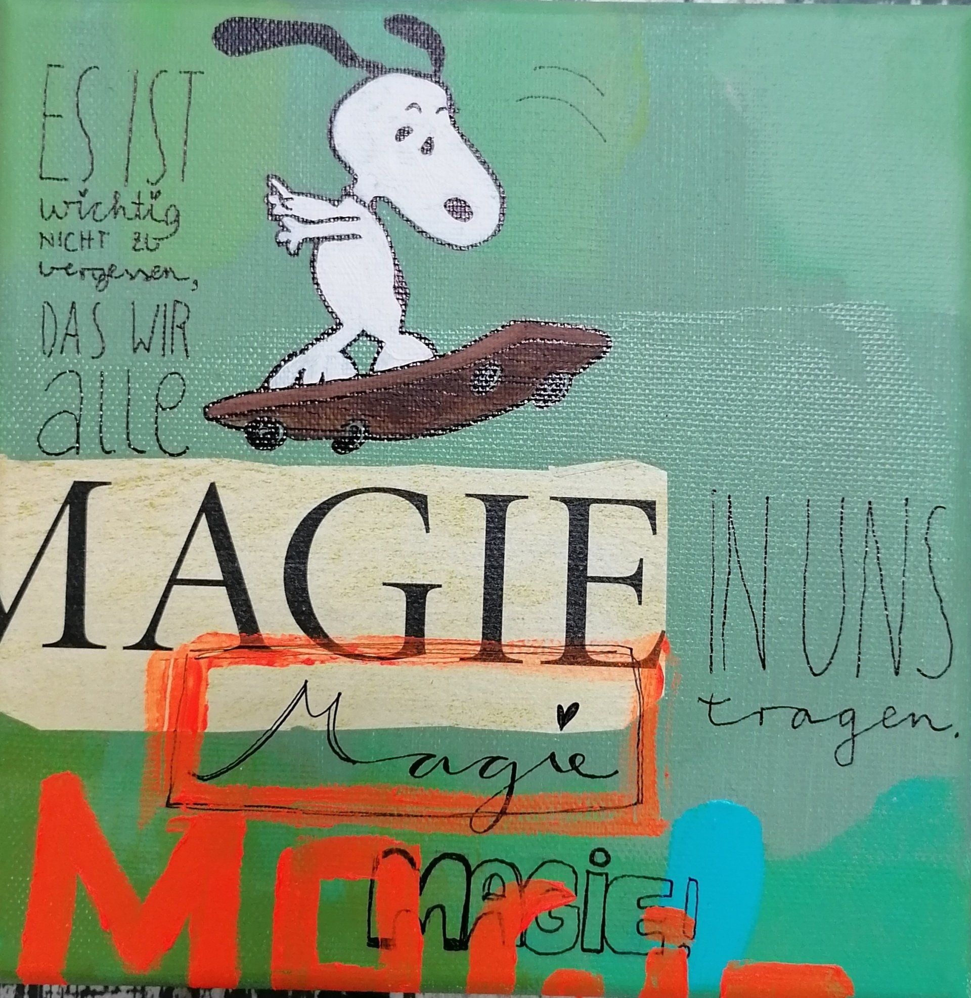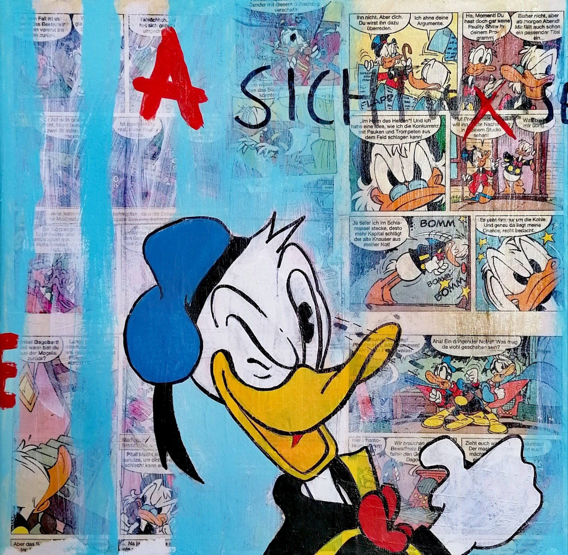 Die Lektüren meiner Kindheit faszinieren mich bis heute. Mimik und Körperhaltung in trügerischen einfachen Strichen sprechen zu lassen und in die freie Malerei mit einfließen zu lassen, verbindet mich immer wieder mit meinem inneren Kind von Damals.